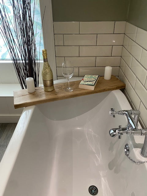Our Wooden Bath Boards are made from reclaimed timber giving added character to your bathroom. Due to their unique knots and grains no two boards will be the same. These boards will enhance your bathroom giving a sleek shelf to house your book and other bits while relaxing in the bath and to store those items too nice to hide away in a cupboard.